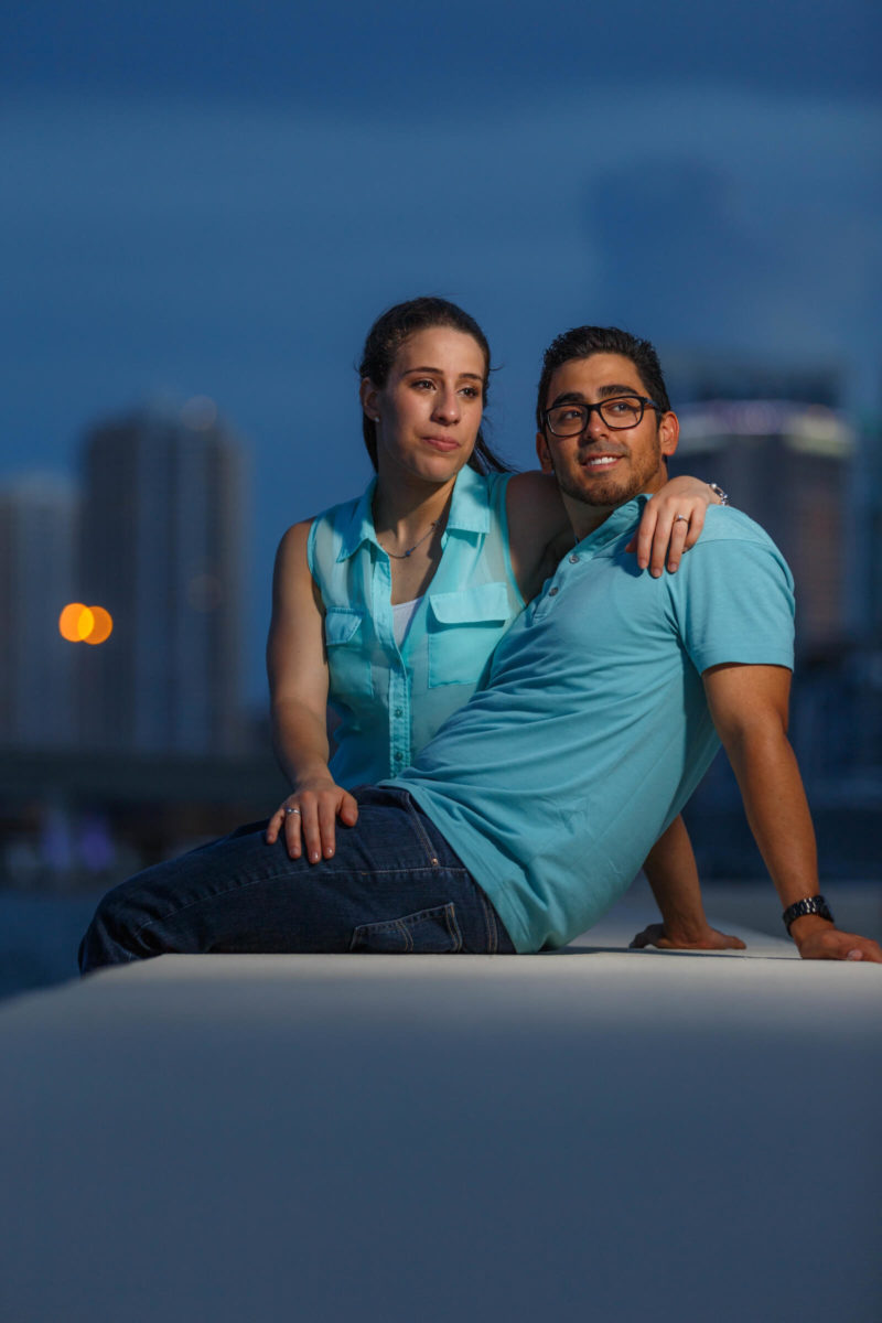 Modern architecture, Intercoastal waterways, Port of Miami, Downtown skyscrapers and MacArthtur causeway, all make amazing backdrops for Miami engagement photographers. We scheduled a session an hour before the sunset to catch some natural sunlight and to also have an opportunity to shoot at the blue hour. I love the variety!